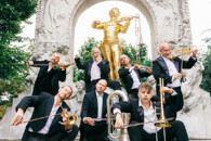 Mnozil Brass Thomas Gansch | Trompete Robert Rother | Trompete Roman Rindberger | Trompete Leonhard Paul | Posaune & Basstrompete Gerhard Füßl | Posaune Zoltán Kiss | Posaune Wilfried Brandstötter | Tuba Strau$$ – Ein Tänzchen zwischen den Stühlen Dass das walzerbesoffene «Duidu, Duidu» und sein relaxtes Pendant «Dudidubidu» tatsächlich nur einen Katzensprung, nicht viel mehr als «a warm embracing dance away» voneinander entfernt sind – das ist den Meistern von Mnozil Brass schon seit Ewigkeiten klar. Mehr als dreissig Jahre lang schon kurven die sieben Kapazunder mit der grössten Selbstverständlichkeit und ihren blitzenden Blasgeräten zwischen Johann Strauß und Frank Sinatra hin und her, zwischen Schostakowitsch und Prince oder auch leidenschaftlich gern von Schubert rüber zu ihren Wahlverwandten von Queen. Die weihevolle Erhabenheit der einen Seite kümmert sie ebenso wenig wie die vermeintliche Banalität der anderen. Aber Strauß – den sowohl Brahms, Wagner und Verdi, als auch die Handwerker und die Mädels aus der Vorstadt (und selbst ein Gershwin) glühend verehrten – er war der Urvater des nonchalanten Tändelns zwischen den Stühlen. Strauß produzierte als Erster Hits am Laufmeter, er nahm sich einen Arrangeur um schneller arbeiten zu können und begriff, dass er mit seinen Brüdern zusammen seinen Sound weltweit reproduzieren konnte. Er war der Erste der E und U unterlief und als Walzerkönig zum Massenphänomen wurde – süßer die Kassen nie klingelten. In Strau$$ enthüllen Mnozil Brass nun wirklich alles über Strau$$. Auch das Letzte. Am Ende bleibt da nichts als die nackte Wahrheit. Ein Projektauftrag von Johann Strauss 2025 Wien Veranstalter: aufgeigen.at
